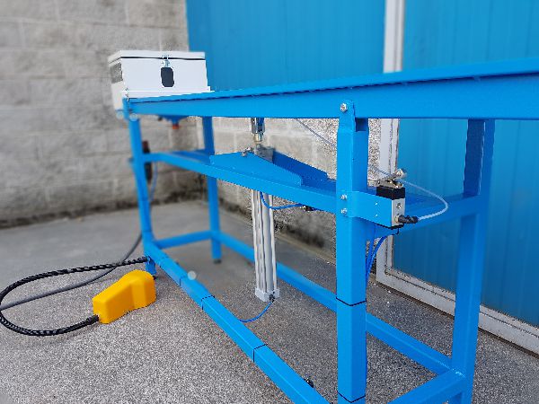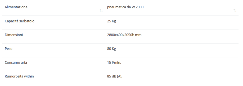 ciclo il serbatoio del sale dotato di dispositivo di raccolta del sale in eccesso, può contenerne sino a 25 Kg di materiale essiccante. Un cilindro pneumatico abbassa e solleva lo scivolo mentre le vibrazioni pneumatiche facilitando il riempimento dei listelli.