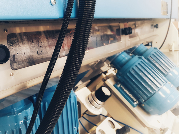 All the spindles, adjustable from the front side of the machine, are made fully of , equipped with 4 high quality precision bearings and mounted on high precision guides. The polishing spindles are equipped with a (completely automatic) pneumatic wear recovery system.