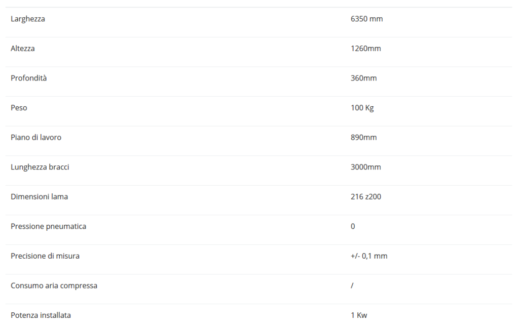 CARATTERISTICHE TECNICHE TAGLIAPROFILI